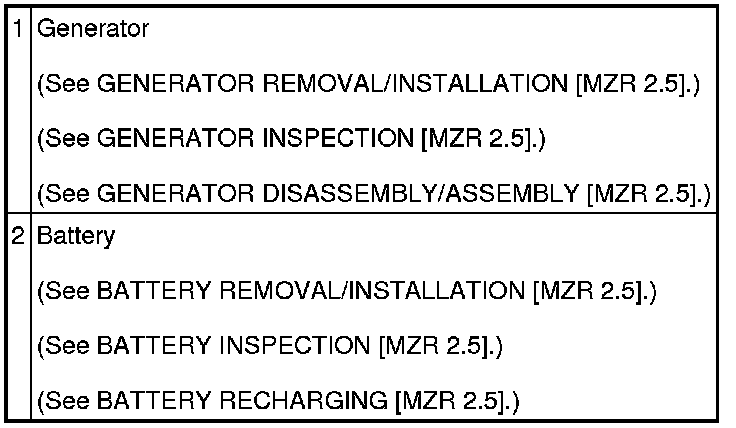 CHARGING SYSTEM LOCATION INDEX [MZR 2.5]
