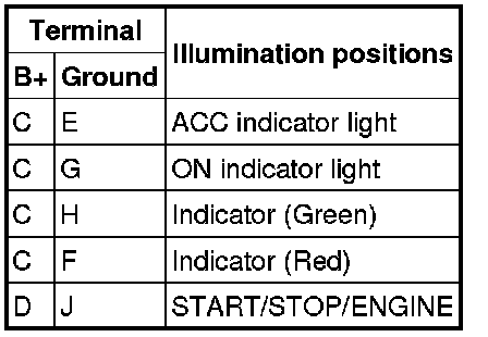 - If not as indicated in the table, replace the push button start.