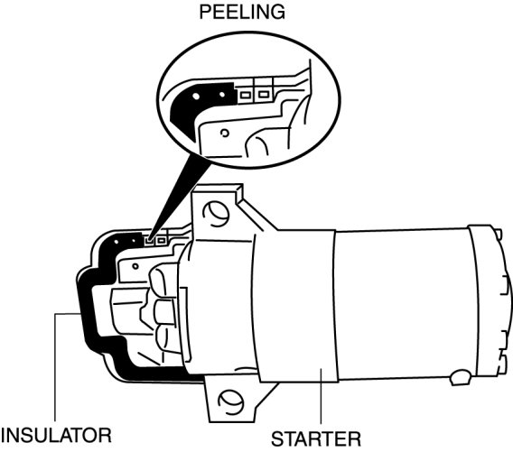 - When the battery cables are connected, touching the vehicle body with starter terminal B will generate sparks. This can cause personal injury, fire, and damage to the electrical components. Always disconnect the negative battery cable before performing the following operation.