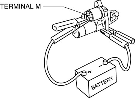 2. Connect battery positive voltage to terminal M and ground the starter body.