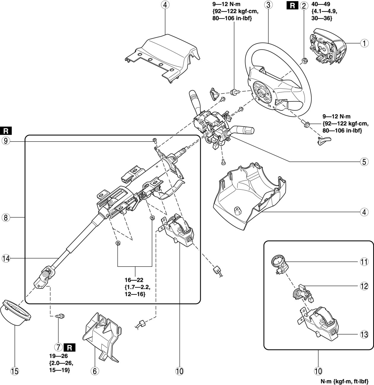 STEERING WHEEL AND COLUMN REMOVAL/INSTALLATION [WITH ADVANCED KEYLESS ENTRY AND PUSH BUTTON START SYSTEM]