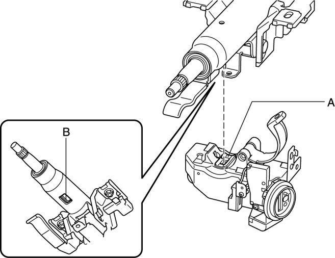1. Assemble section A of the steering lock component to the section B of the steering shaft.
