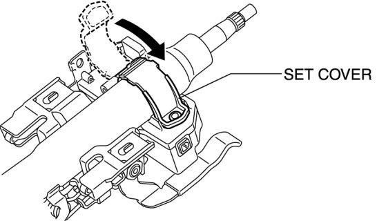 2. Set the set cover to the steering shaft and then temporarily install the steering lock component to the steering shaft using a new steering lock mounting bolt.