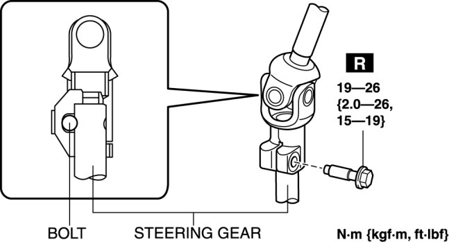 3. After temporarily installing the joint bolt to the intermediate shaft joint, shake the intermediate shaft up and down to verify that the joint bolt is installed to the groove of the steering gear.