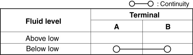 3. Verify that continuity between the washer fluid-level sensor terminals is as indicated in the table.