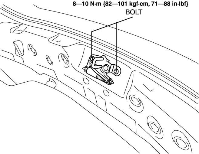 2. Remove the bolts, then remove the trunk lid lock striker.
