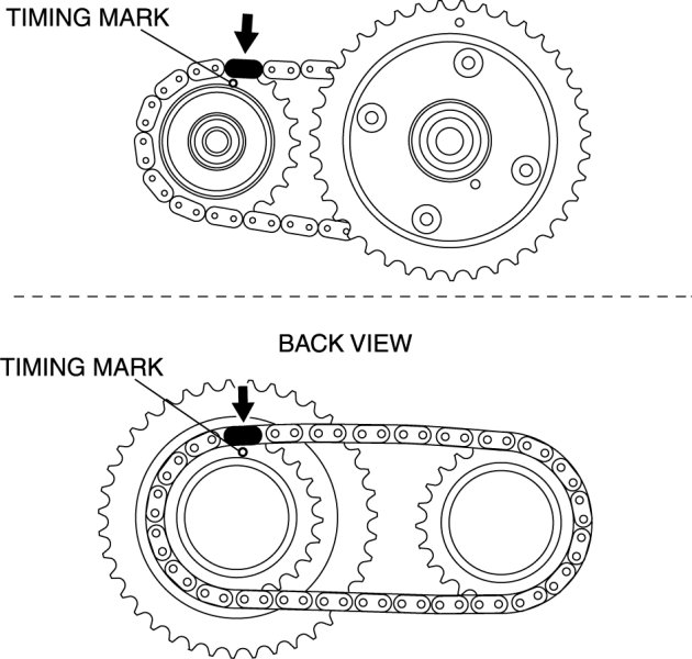 2. If the timing marks on the timing chain are not evident, place timing marks on the timing chain using an indelible ink marker.