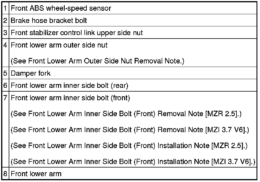 Front Lower Arm Inner Side Bolt (Front) Removal Note [MZI 3.7 V6]