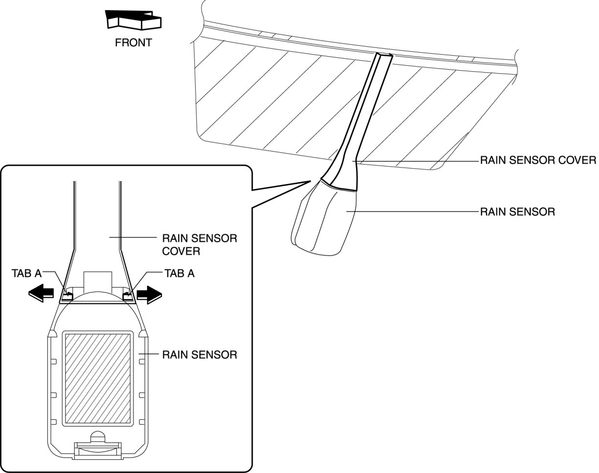 2. Open the rain sensor cover in the direction of the arrow and remove it while releasing rain sensor cover tab A.