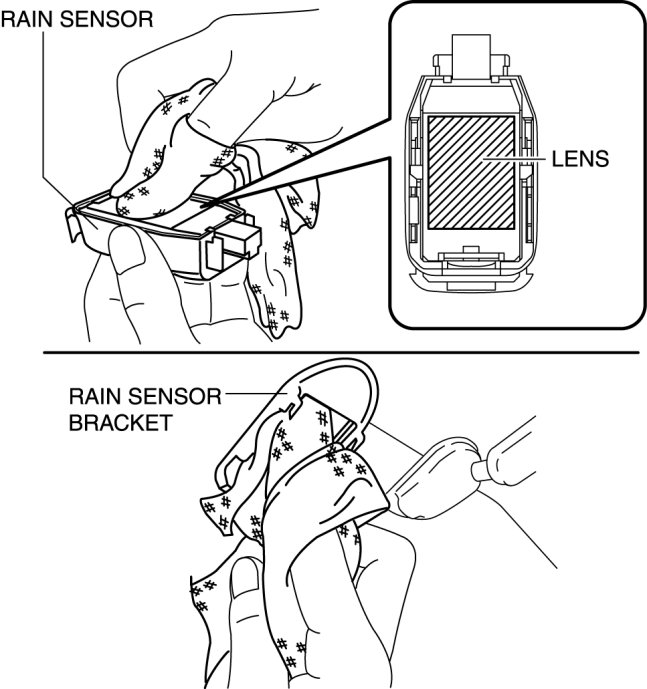 - Do not touch rain sensor lens, rain sensor protective sheet, and sensor installation area on windshield with your finger