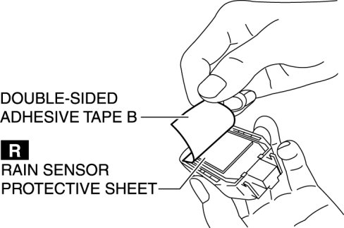 4. Peel off double-sided adhesive tape B from the rain sensor protective sheet.