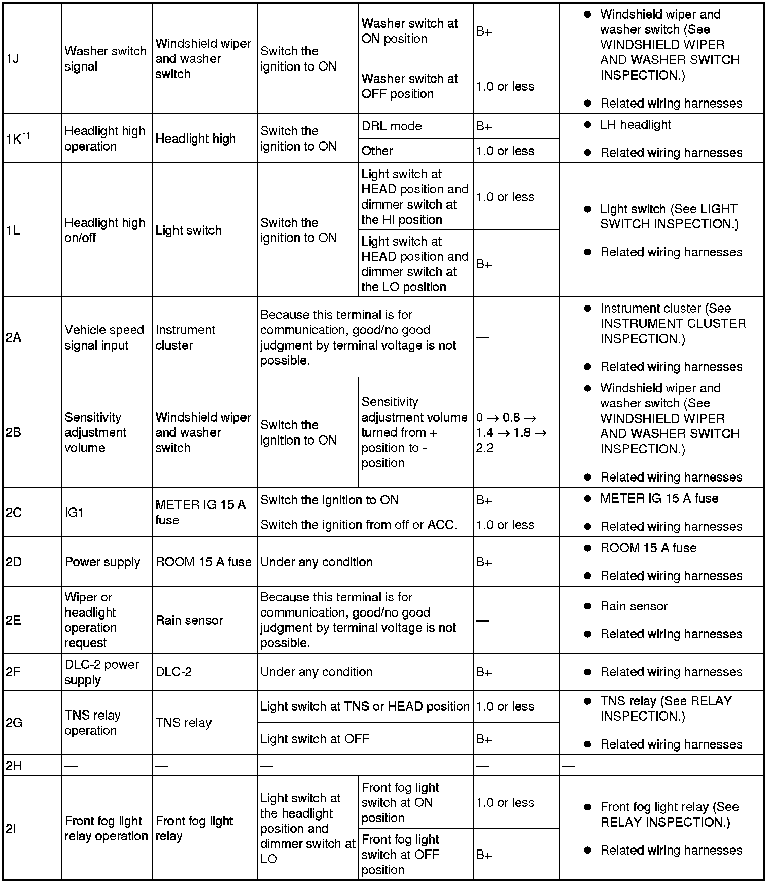 Terminal Voltage List (Reference)