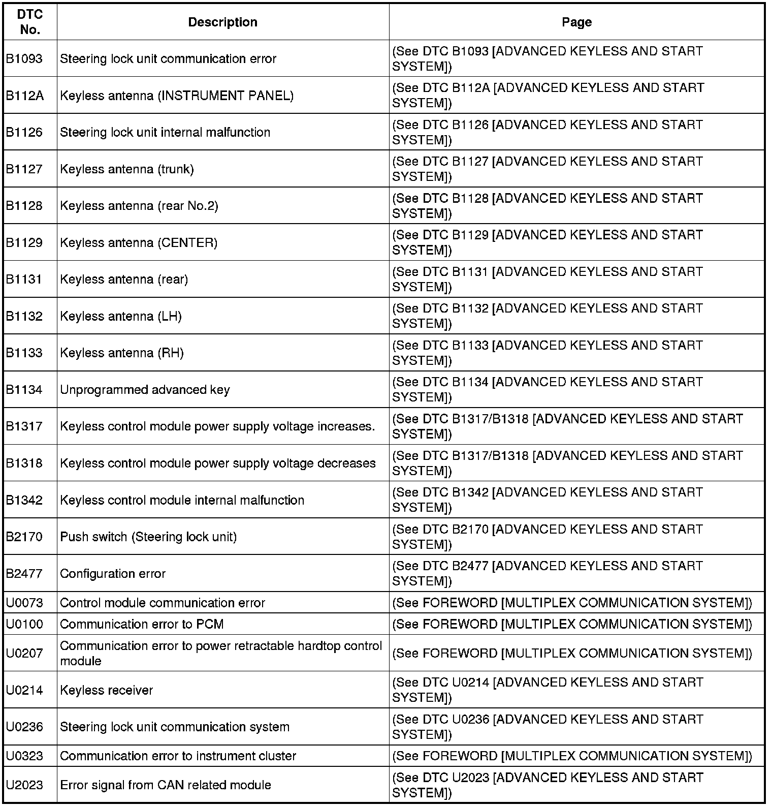 DTC TABLE [ADVANCED KEYLESS AND START SYSTEM]