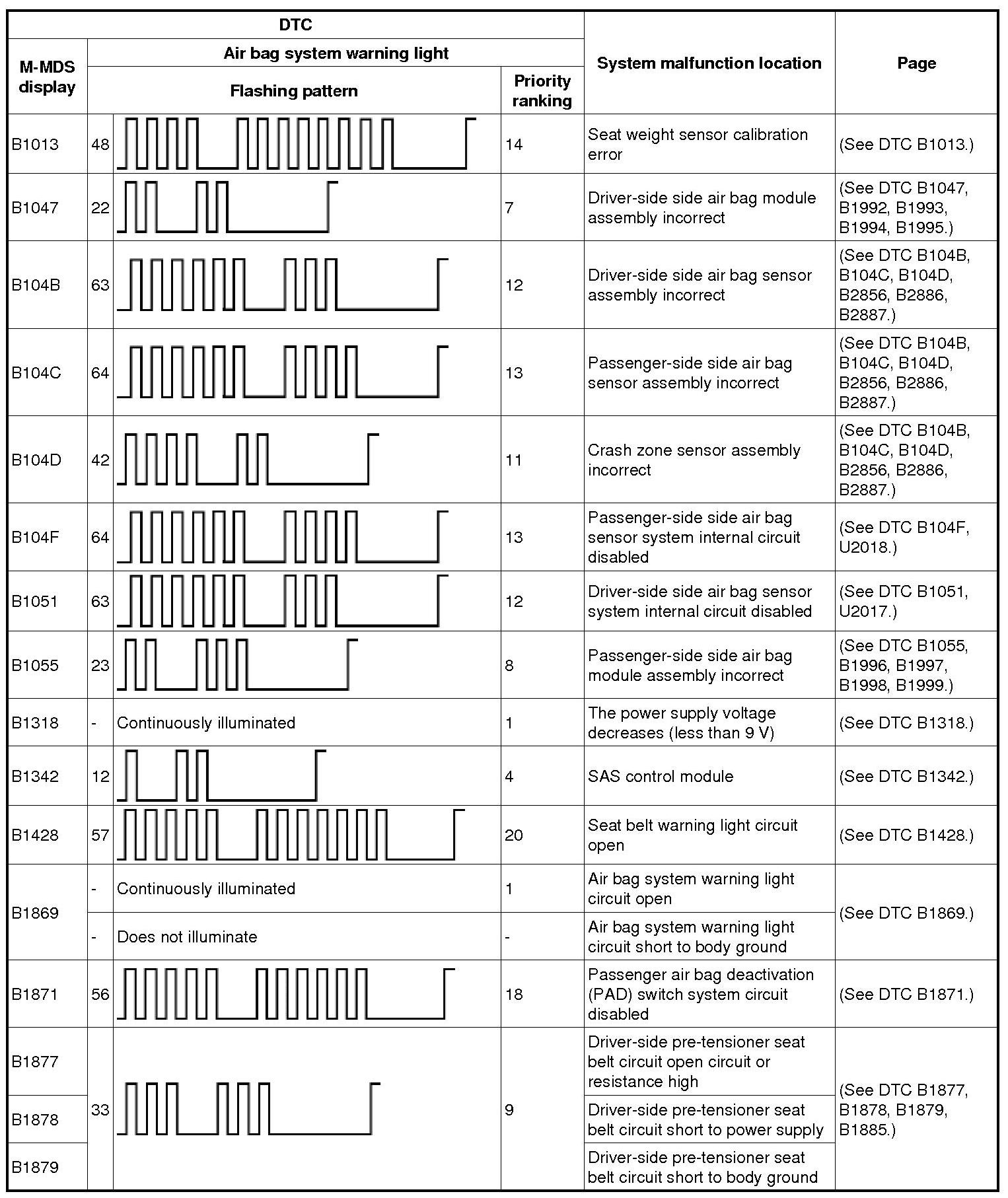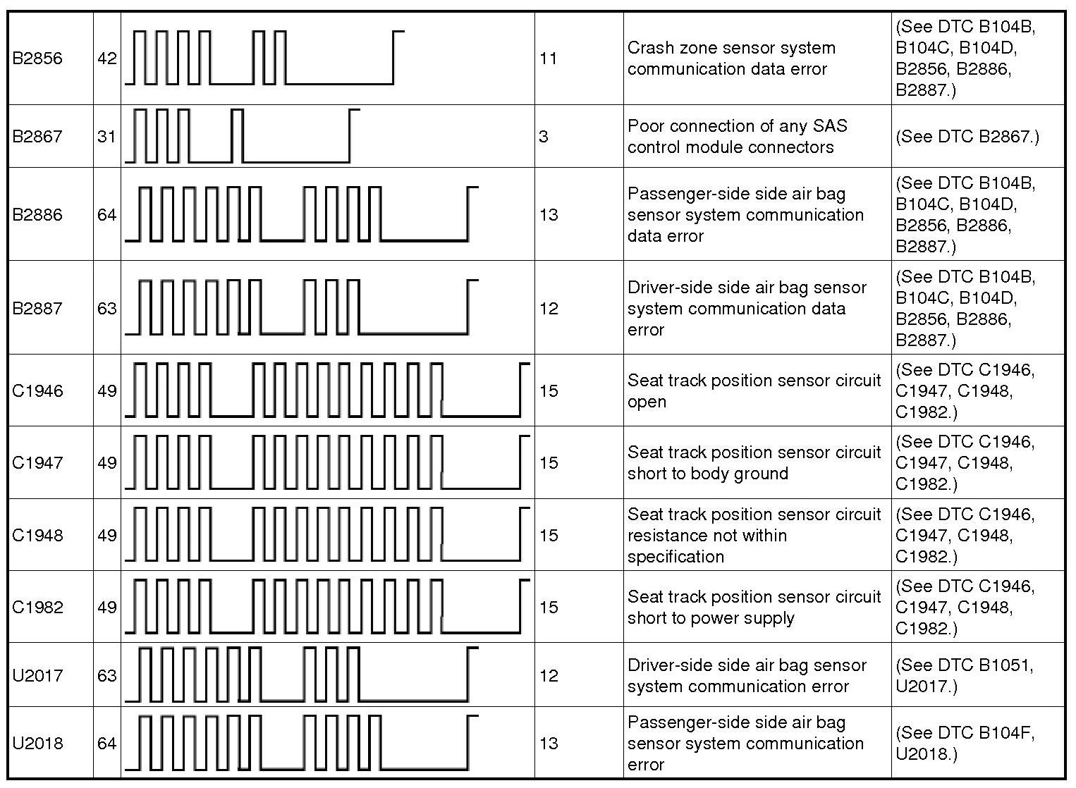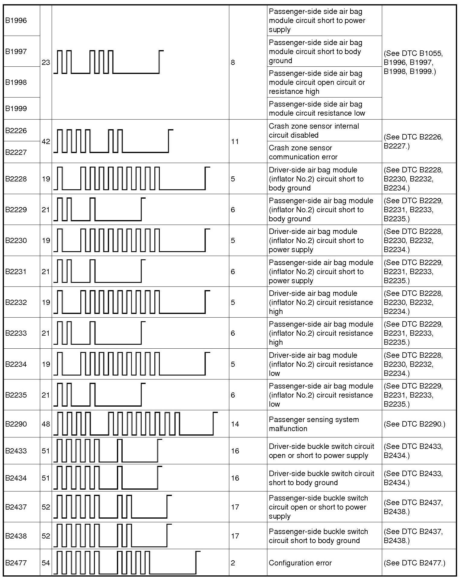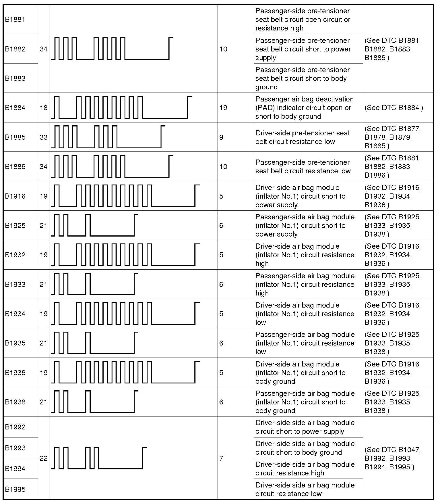Restraint System - DTC Table
