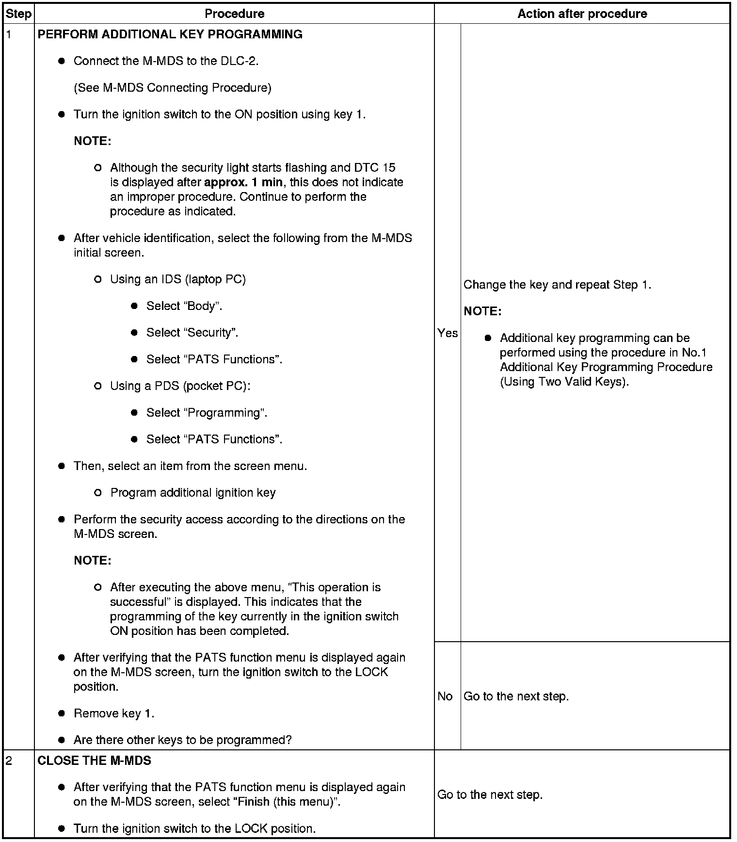 - If a key ID number cannot be programmed and DTC 15 is displayed, the maximum number of programmed keys may have been reached. Verify the number of programmed keys using the M-MDS.