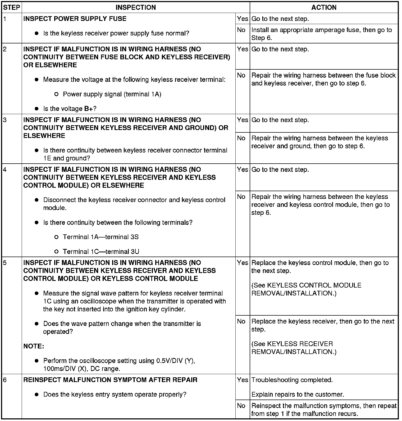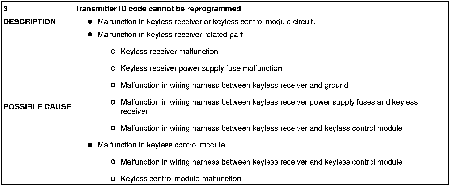 NO.3 TRANSMITTER ID CODE CANNOT BE REPROGRAMMED [KEYLESS ENTRY SYSTEM]