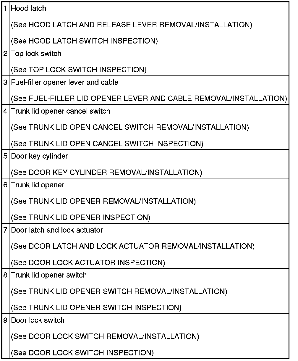 SECURITY AND LOCKS LOCATION INDEX