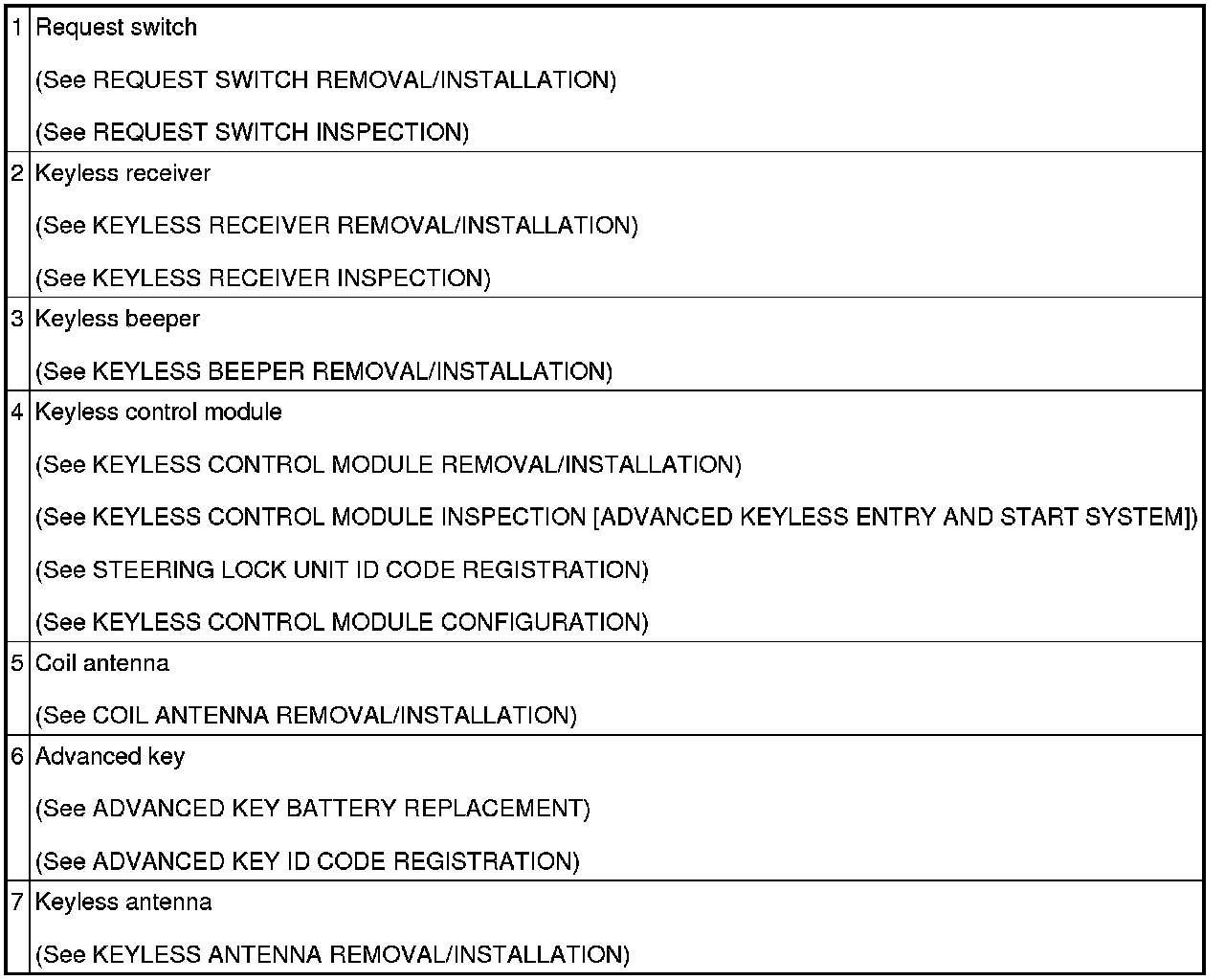 Keyless Entry: Locations