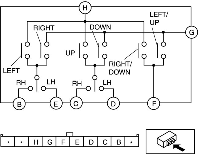 Inspect for continuity between the power outer mirror switch terminals using an ohmmeter.