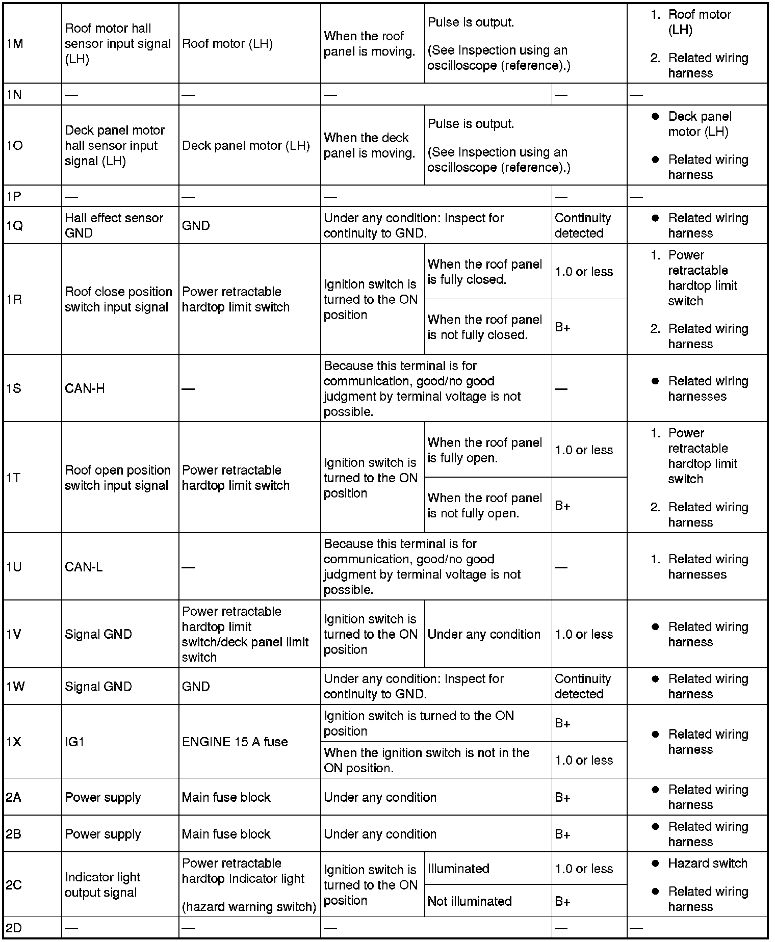 - Terminal connected: power retractable hardtop control module 1I (RH), 1M (LH)-Negative battery terminal