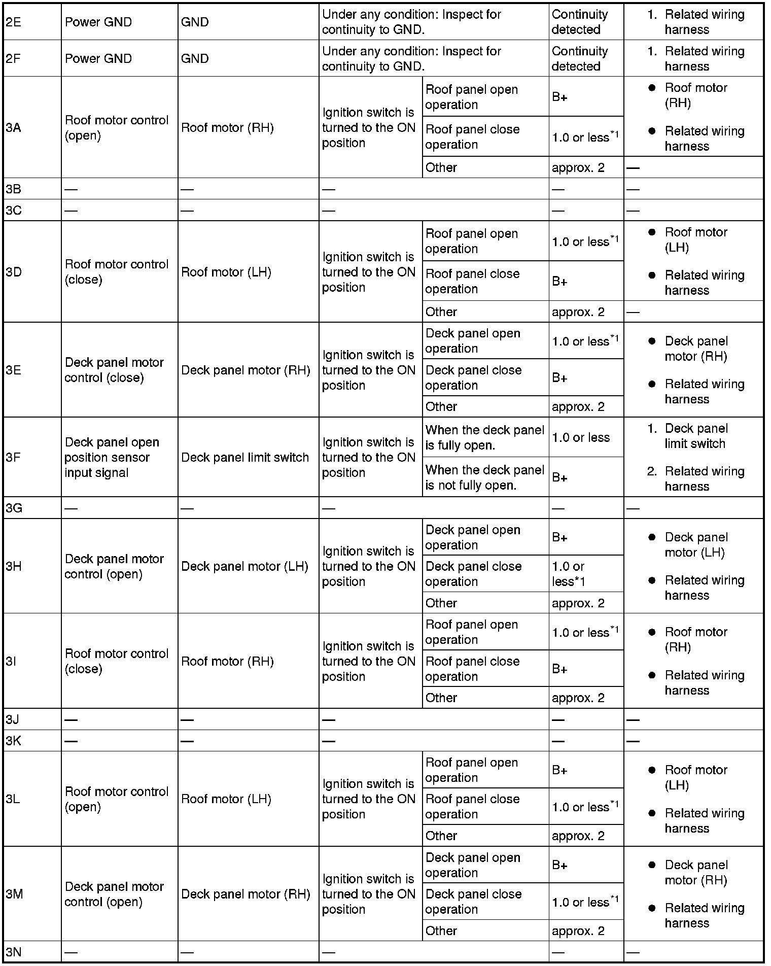 1 Pulse interval varies with the roof panel operation speed.