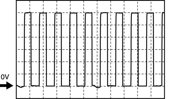 - Oscilloscope setting: 2 V/DIV (Y): 5 ms/DIV (X), DC range