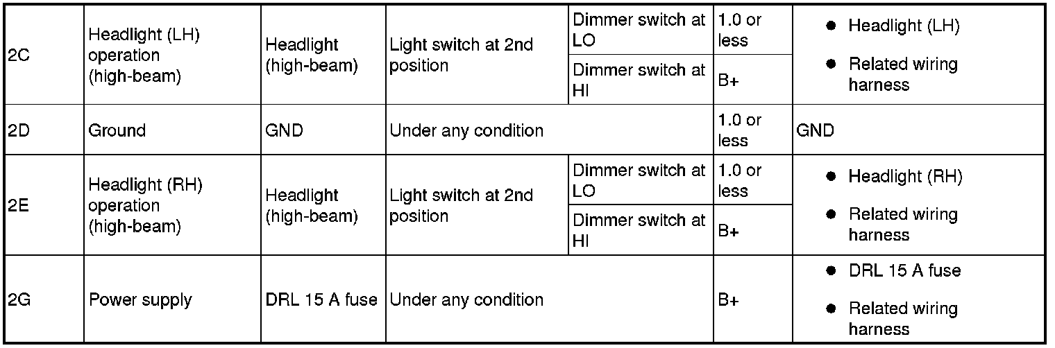 - If the voltage or continuity is not as specified in the Terminal Voltage Table, inspect the parts under "Inspection item (s)".
