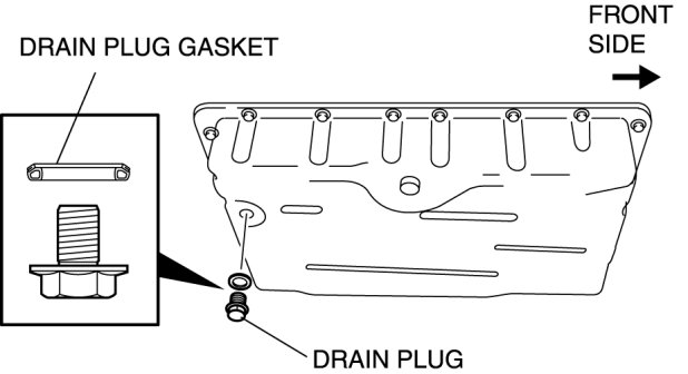 1. Remove the drain plug and the drain plug gasket from the oil pan.