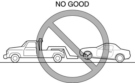 - Do not tow the vehicle pointed forward with driving wheels on the ground. This may cause internal damage to the transmission.