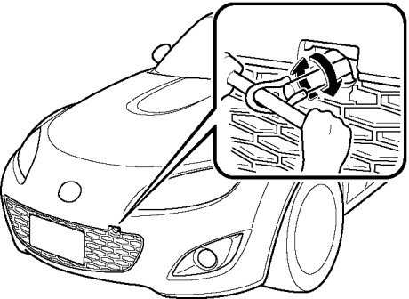 1. Wrap the screwdriver or similar tool with a soft cloth to prevent damage to a painted bumper, and open the cap located on the front or rear bumper.