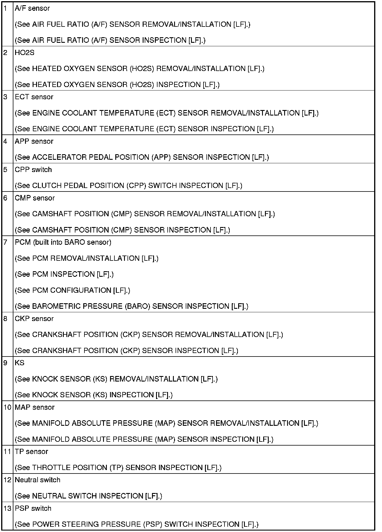 CONTROL SYSTEM LOCATION INDEX [LF]