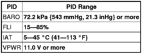 - To successfully perform this procedure, all PIDs must be within the following specifications before proceeding to the next step.