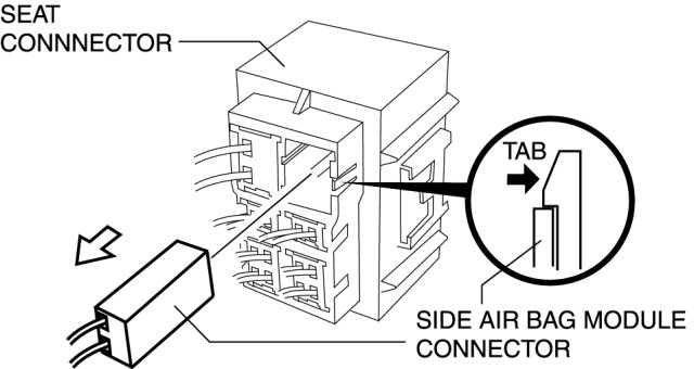 6. Detach the tab as shown in the figure and remove the connector from the seat connector.