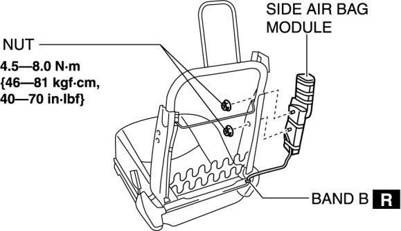 - If the side air bag module is installed with debris in the seat back, the foreign material may be scattered when the side air bag module operates (deploys), causing injury. Verify that there is no foreign material in the seat back before installing the side air bag module.