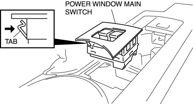 4. Depress the tab and remove the power window main switch.