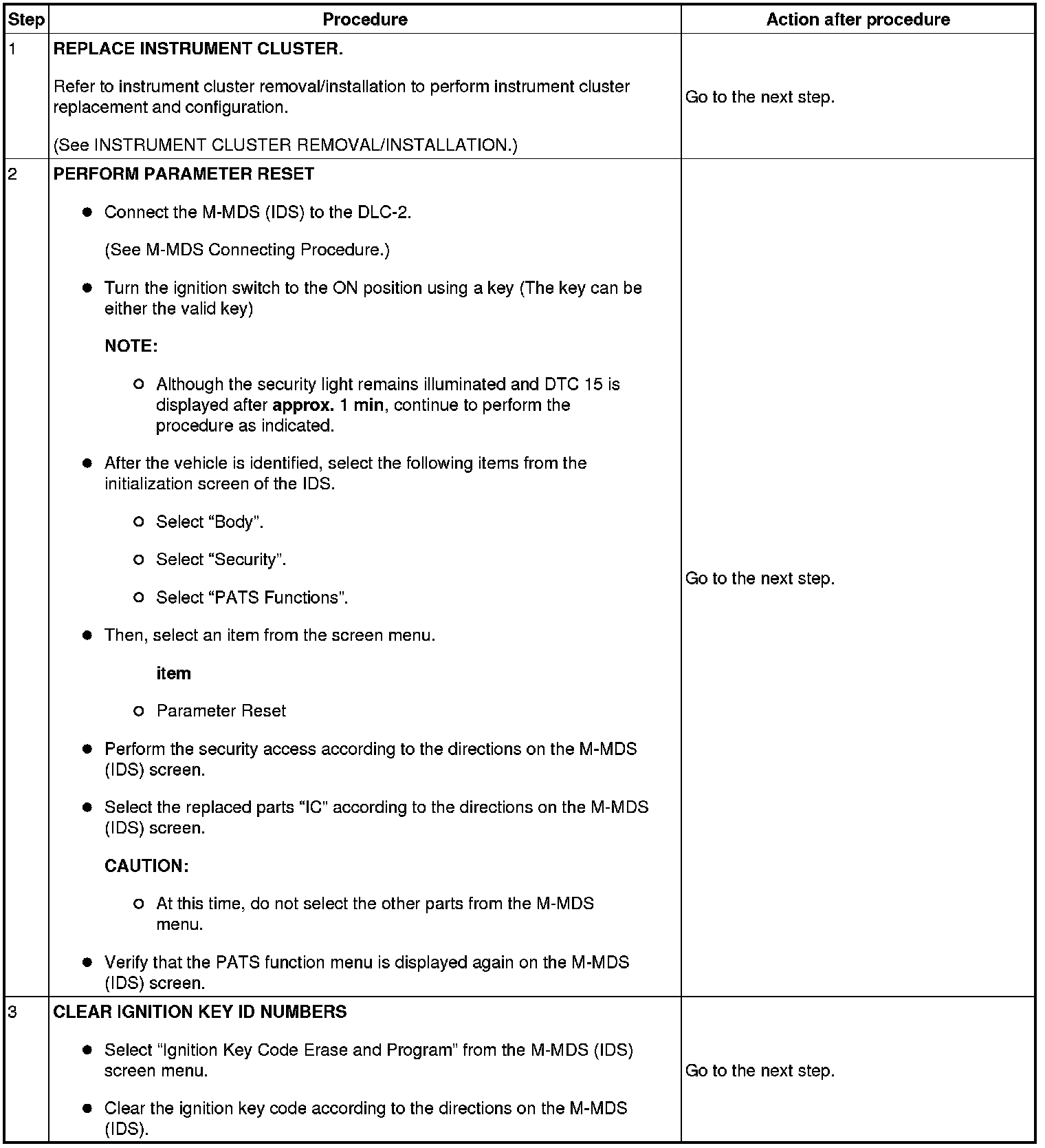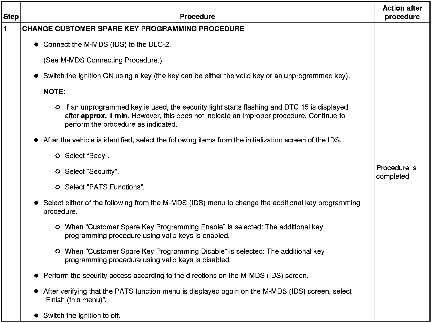 - If a key ID number cannot be programmed and DTC 15 is displayed, the maximum number of programmed keys may have been reached. Verify the number of programmed keys using the M-MDS (IDS).