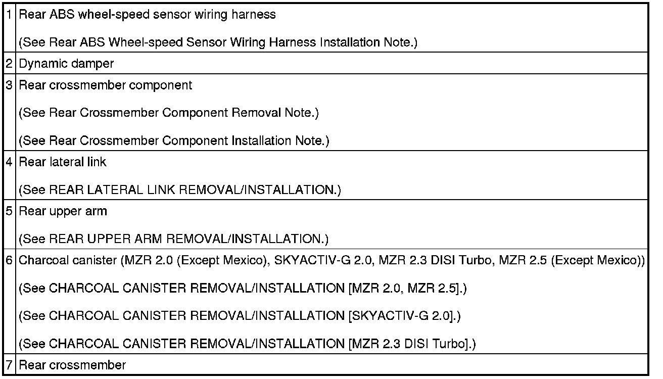 Rear Crossmember Component Removal Note