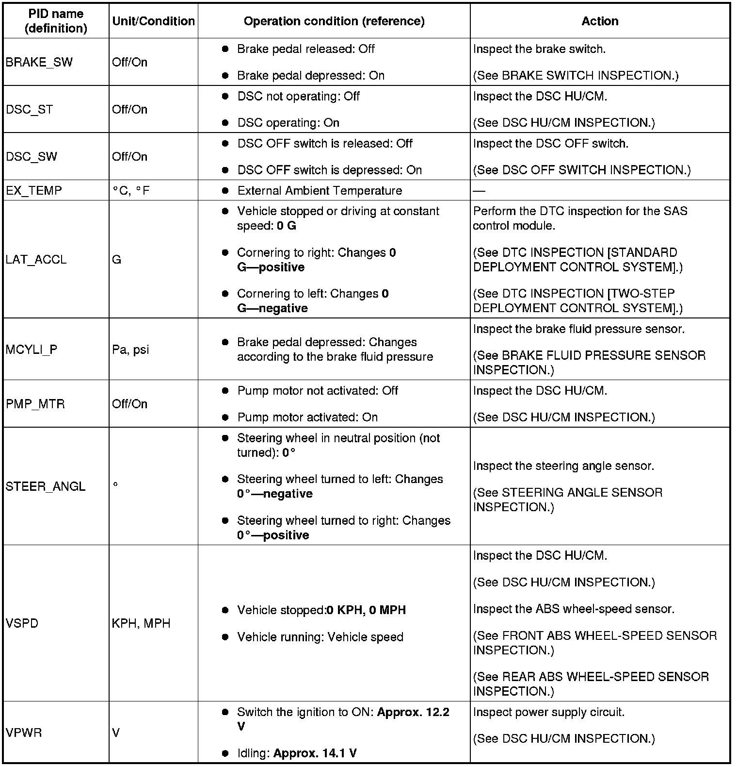 PID/DATA Monitor Table [DSC]