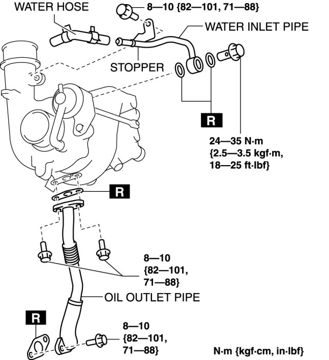 4. Install the water hose to the throttle body. (Turbocharger removed)