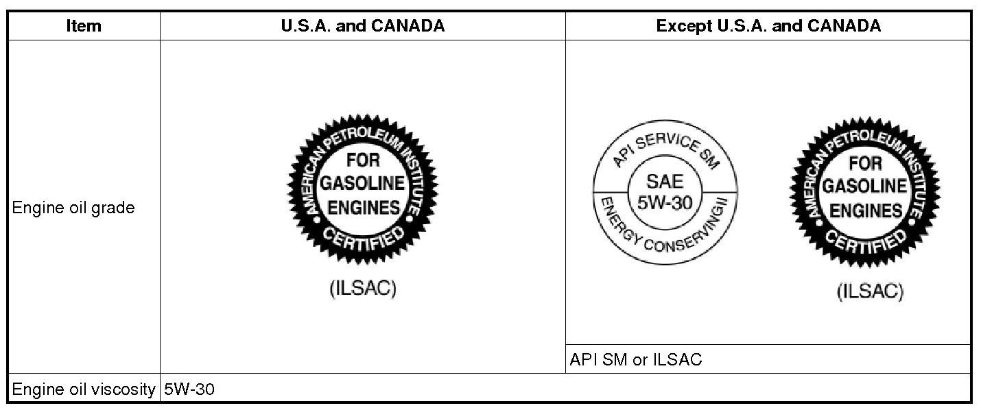 6. Refill with the following type and amount of the engine oil. Engine oil specification