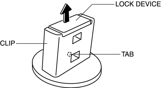 8. Pry off the lock device of the clip while pressing the tab in the position shown in the figure.
