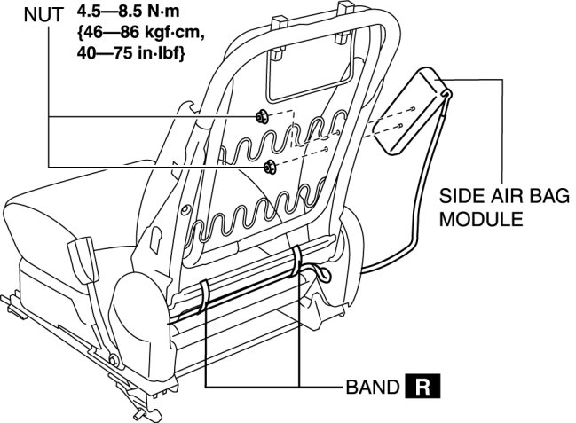 - If the side air bag module is installed with debris in the seat back, the foreign material may be scattered when the side air bag module operates (deploys), causing injury. Verify that there is no foreign material in the seat back before installing the side air bag module.