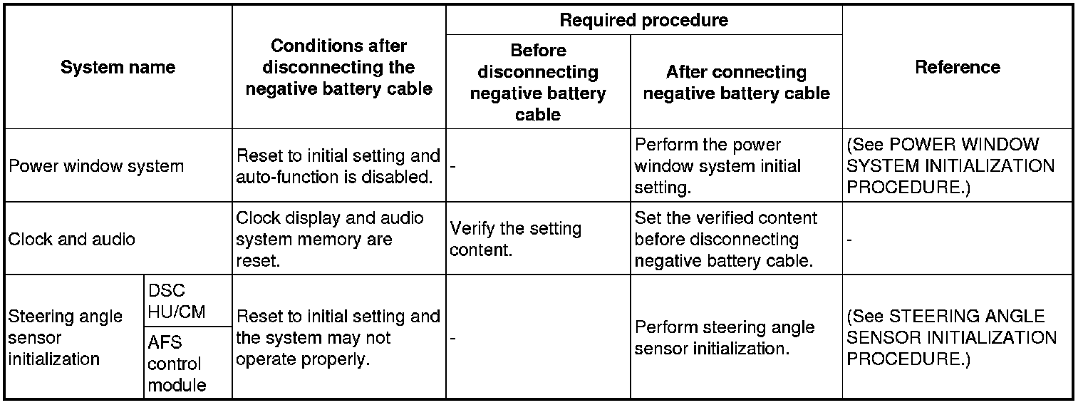 Negative battery cable disconnection/required procedures after connecting