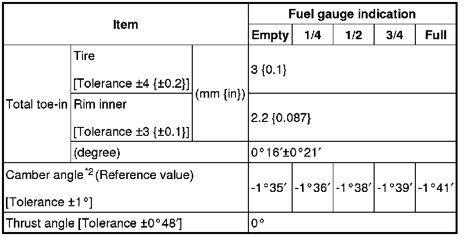 Rear wheel alignment (Unloaded)*1 [MZR-2.0, SKYACTIV-G 2.0, MZR-2.5]