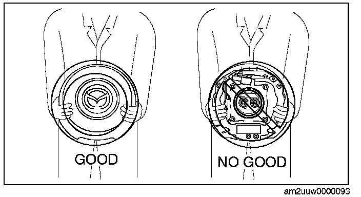 - Before removing the air bag module or disconnecting the air bag module connector, always turn the ignition switch to the LOCK position, disconnect the negative battery cable, and then wait for 1 min or more to allow the backup power supply of the SAS control module to deplete its stored power.