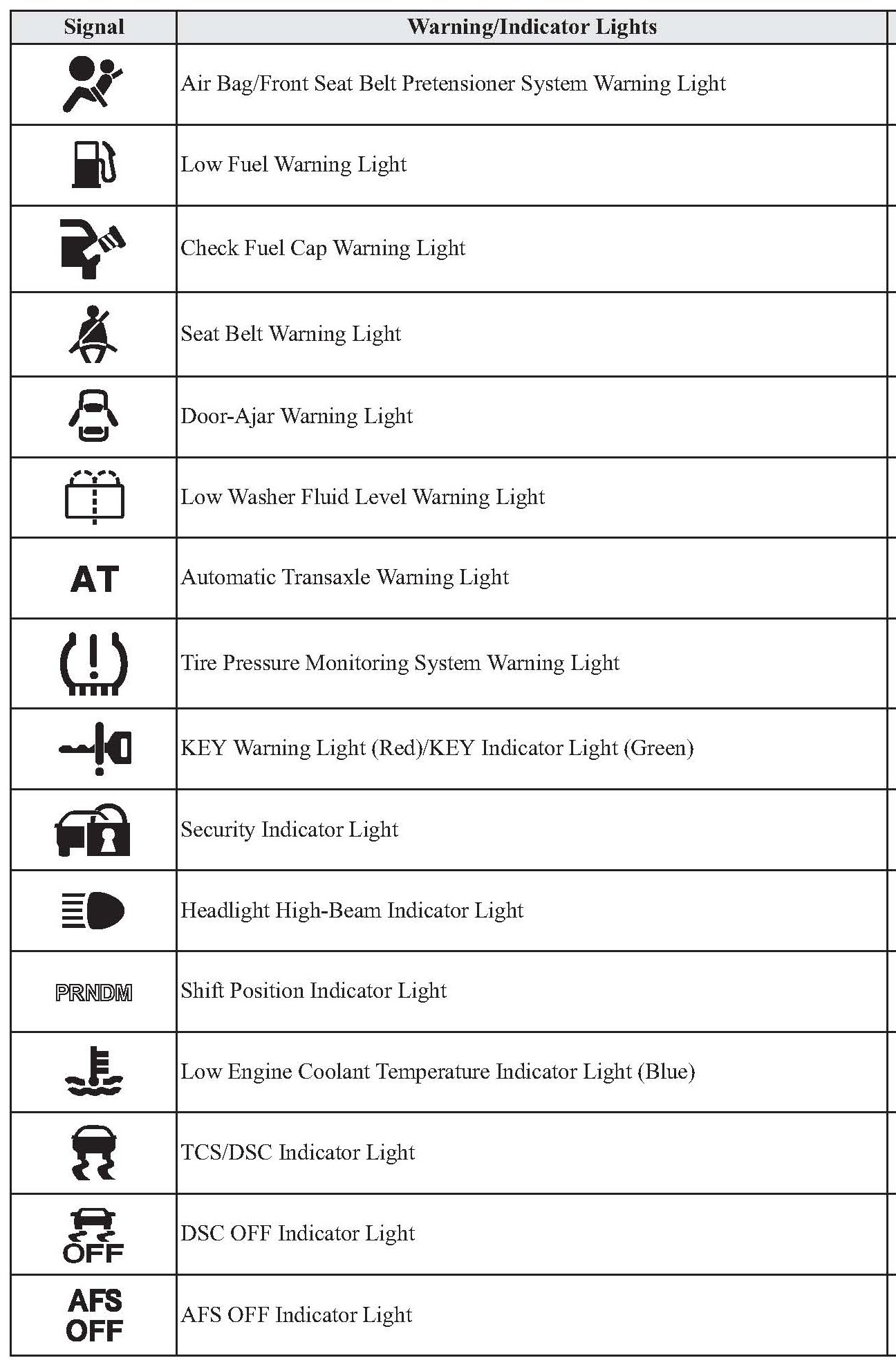 Warning/Indicator Lights
