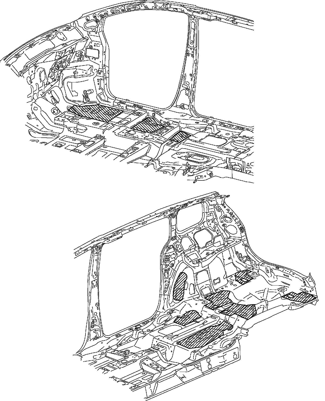 After repairing the body, attach the dumping sheet to the location shown in the figure for noise insulation.
