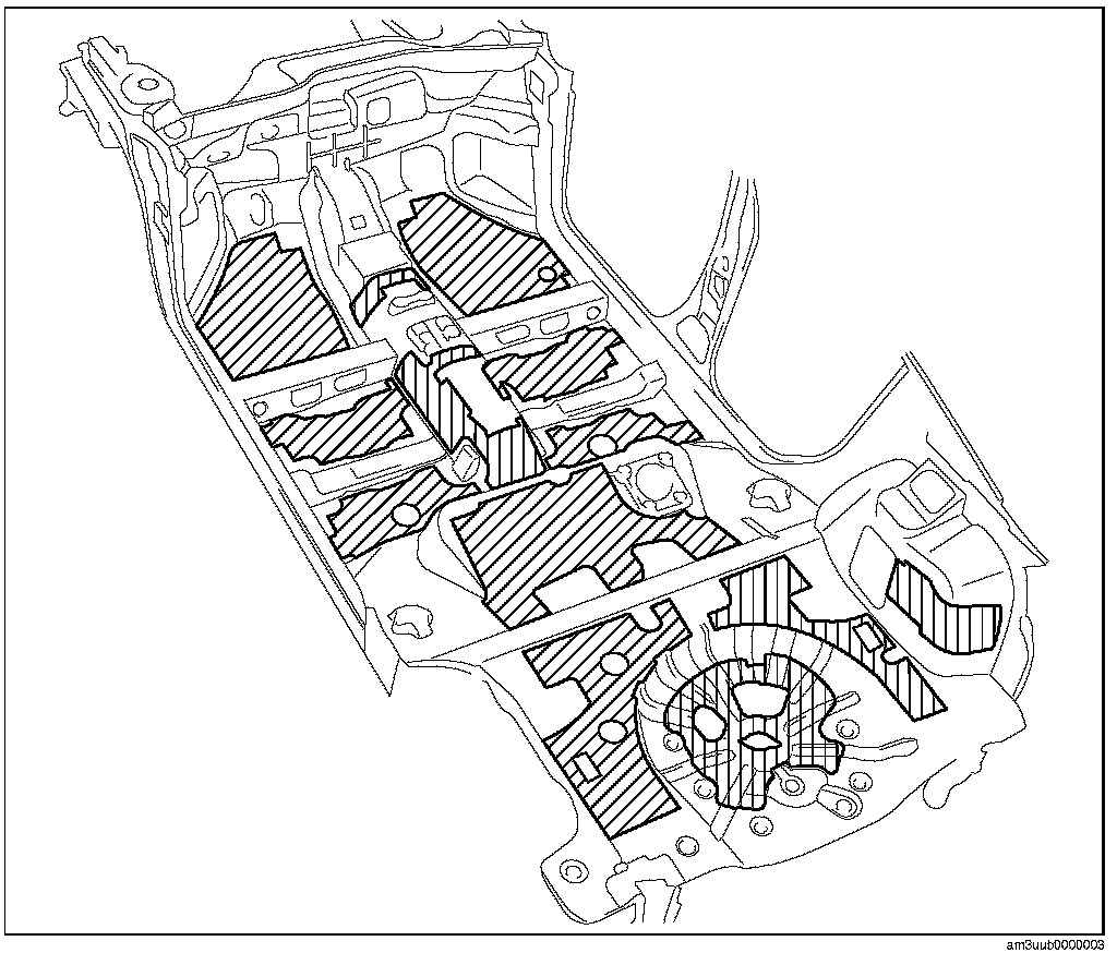 After repairing the body, attach the dumping sheet to the location shown in the figure for noise insulation.