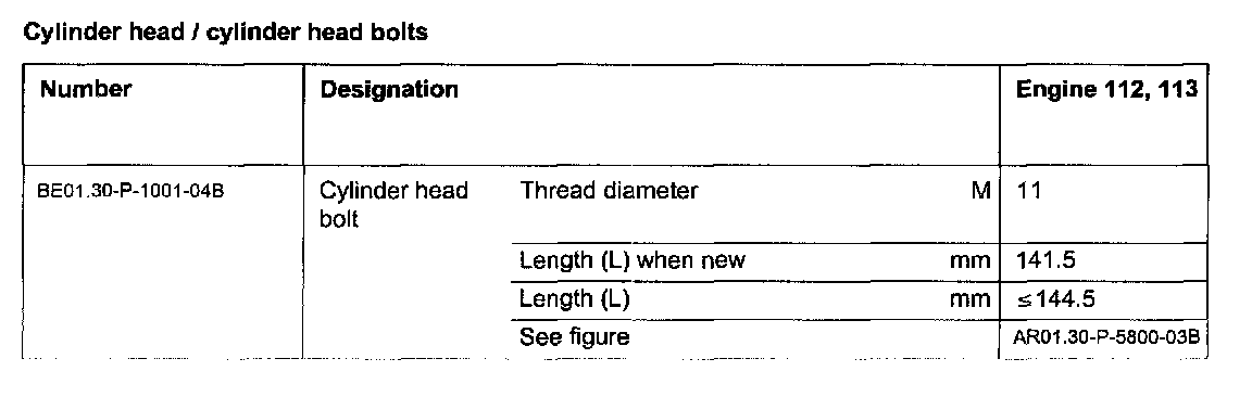 Cylinder head bolt length dimensions