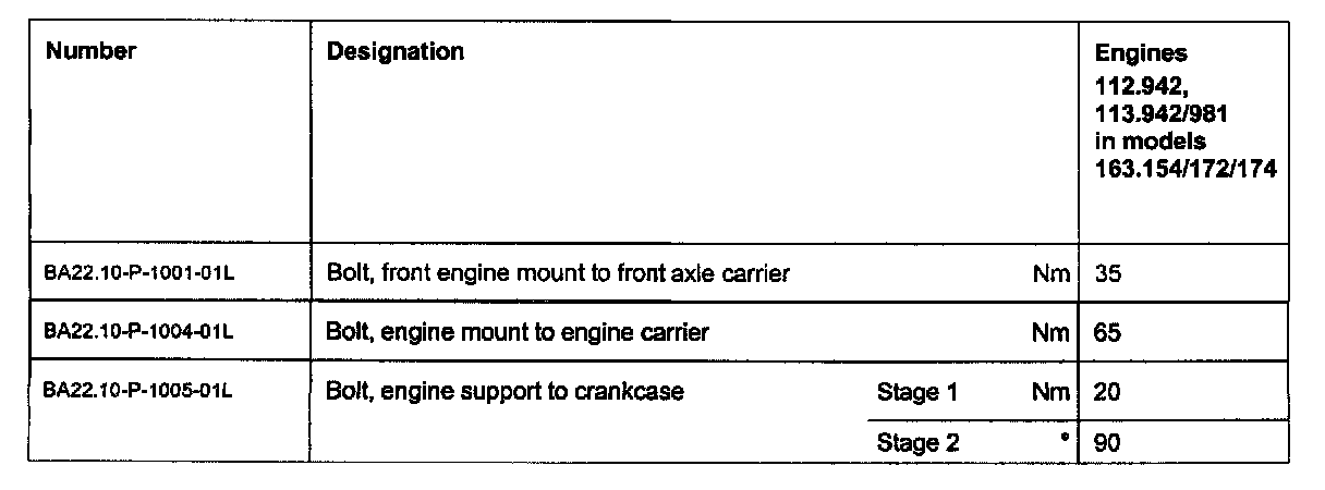 Engine mounts, engine supports tightening specifications